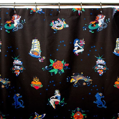 Sin in Linen Flash Tattoo Print Shower Curtain, Black Review