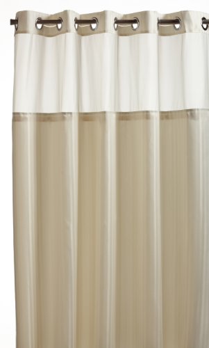 This Hookless Fabric Shower Curtain with built-in rings makes updating your bathroom a breeze. Our patented Flex-On rings eliminates the need to purchase shower curtain rings and deal with the hassle of them falling off the curtain. Sheer window adds extra light into showering space. Snap-in fabric liner included for easy cleaning.You will not be disappointed with