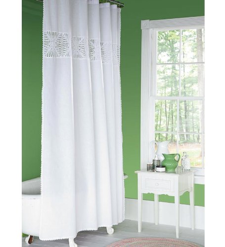 Beautiful, elegant crochet adds a vintage element to our classic Hand-Crocheted Cotton Shower Curtain. It features an eye-catching 8"L hand-crocheted panel for elegant texture and style. Crocheted Shower Curtain is lined from the crochet insert down. 100% cotton face and lining; machine wash gentle. Use with a liner, not included. Imported.You will not be disappointed with