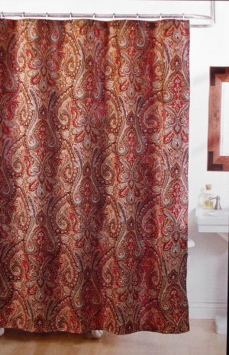 Lauren by Ralph Lauren Shower Curtain in a contemporary paisley motif in red, green, and camel. Standard size, easy care cotton.You will not be disappointed with