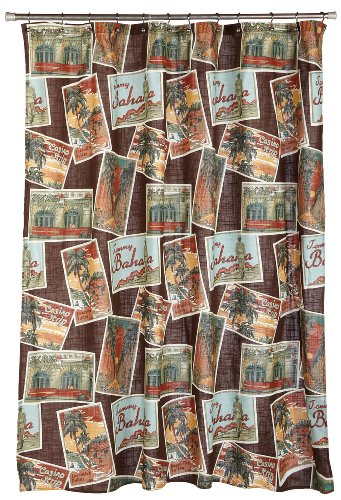 Tommy Bahama shower curtain features the signature postcard print. It coordinates beautifully in any bathroom.You will not be disappointed with