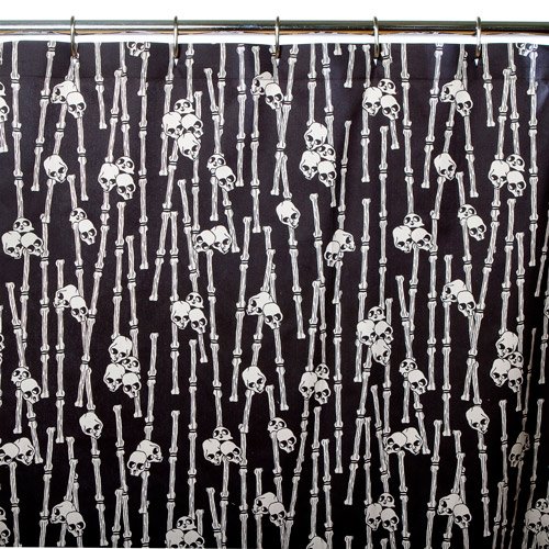 Black and white skull and bones print on fabric shower curtains.You will not be disappointed with